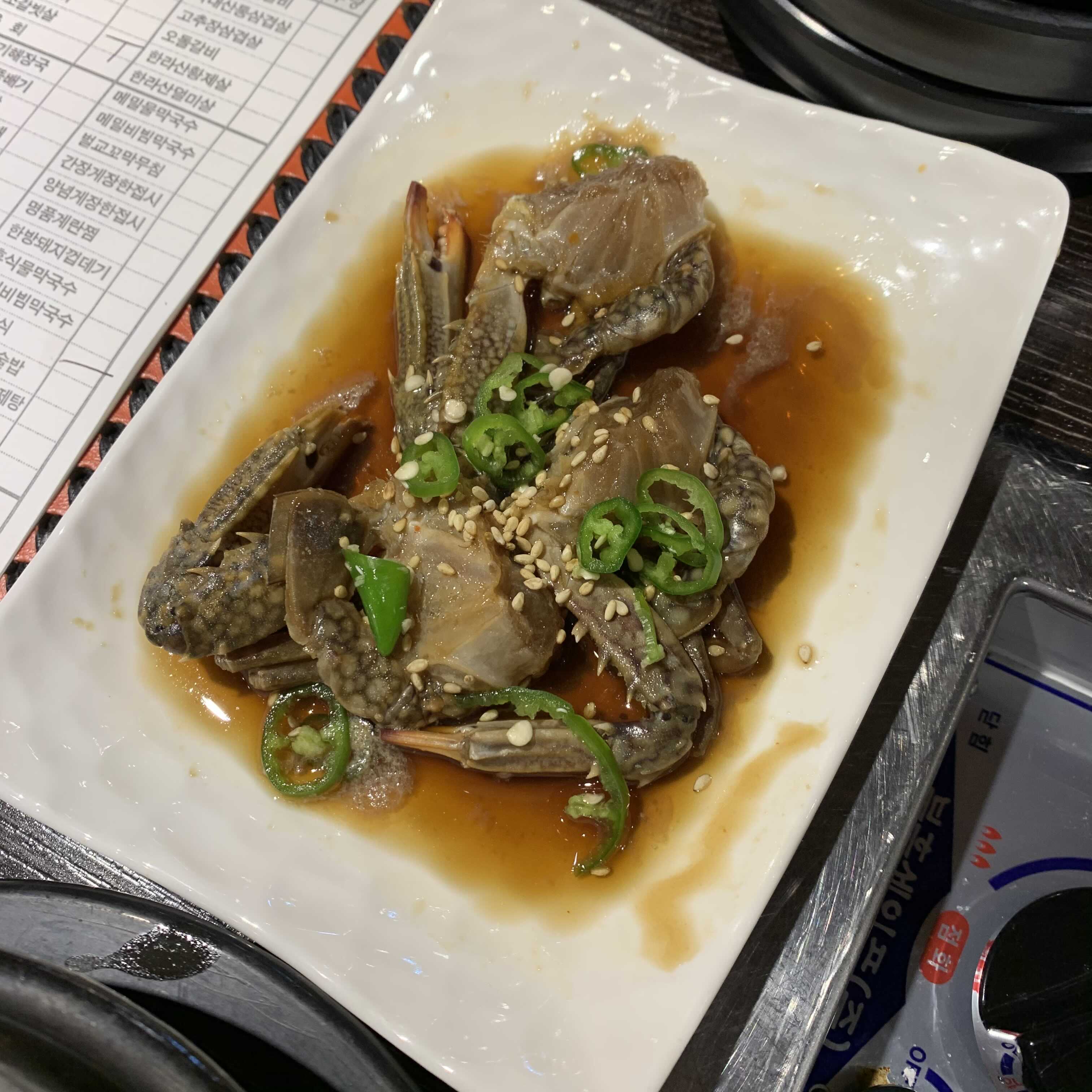 후식 정식에 나오는 된장찌개와 간장게장입니다. 가격은 5,000원으로 정말 저렴해서 적당히 후식으로 먹을 양만 나온답니다. 오천 원 치고는 정말 괜찮은 후식이라고 생각합니다. 저는 밥이랑 고기를 같이 먹는 걸 좋아해서 지금 시켰지만 고기를 다 드시고 먹는 메뉴라고 합니다. 된장도 컬컬하게 맛있고 간장게장도 간이 잘 베여있어 정말 맛있게 먹었습니다.