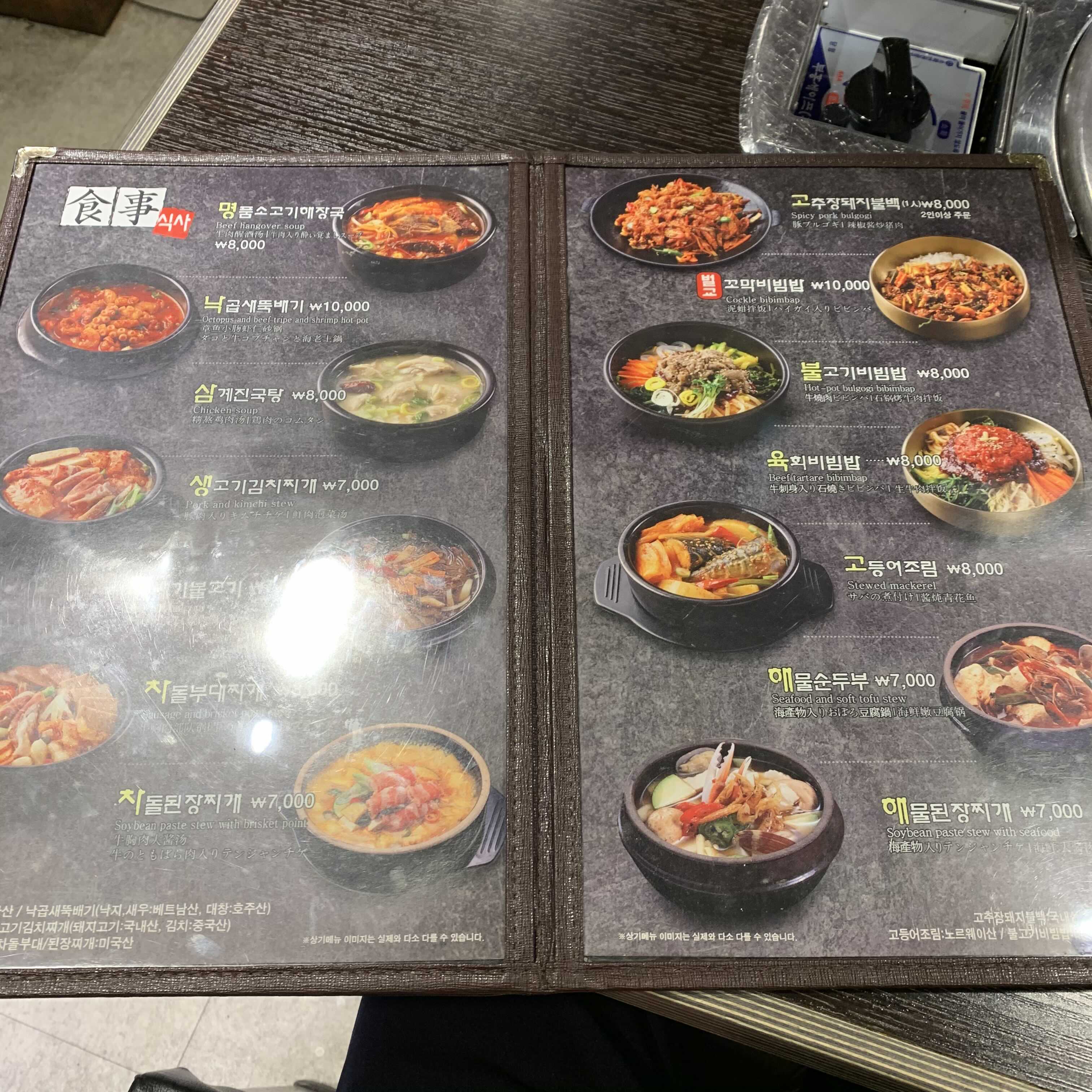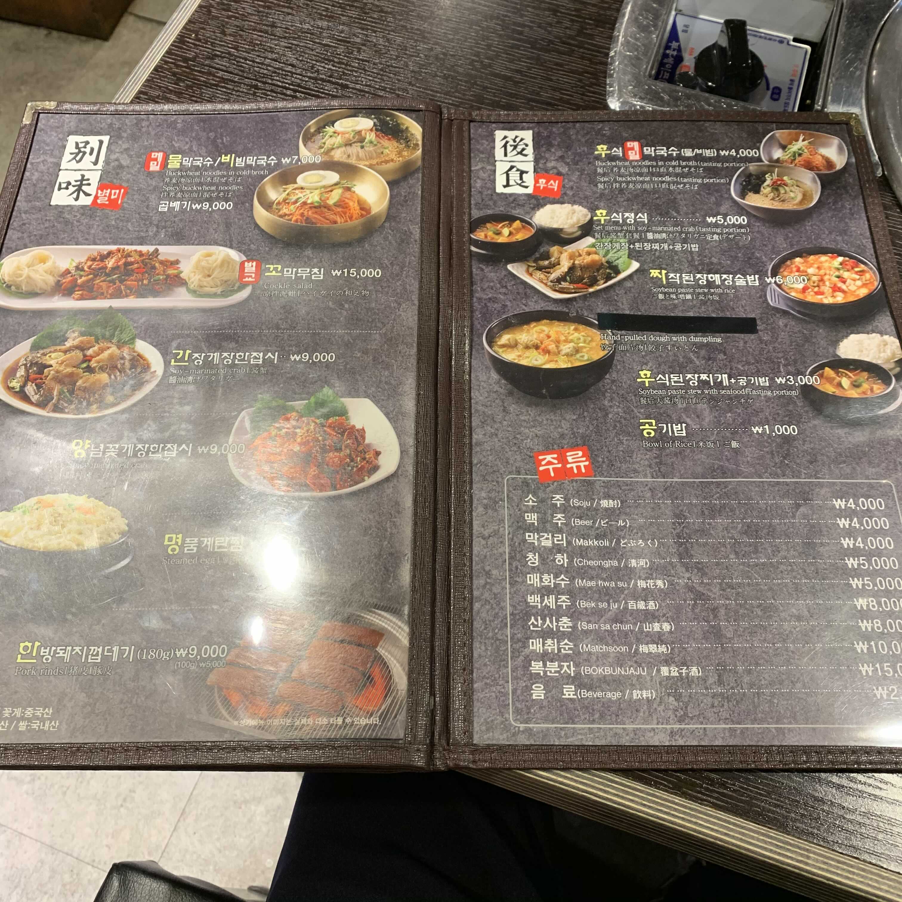 뒤에는 고기 말고도 식사류가 많이 팝니다. 그래서 와서 고기를 구워 드시지 않아도 먹을게 엄청 많아서 간단하게 오기도 좋은 장소인 것 같습니다. 옛날 농장의 국밥도 엄청 맛있다고 소문나 있으니 한번 드셔 보시는 것도 좋은 생각입니다. 저는 국밥까진 먹고 싶지 않아 간장게장+된장찌개+공깃밥이 나오는 5,000원짜리 후식 정식도 주문하였습니다.