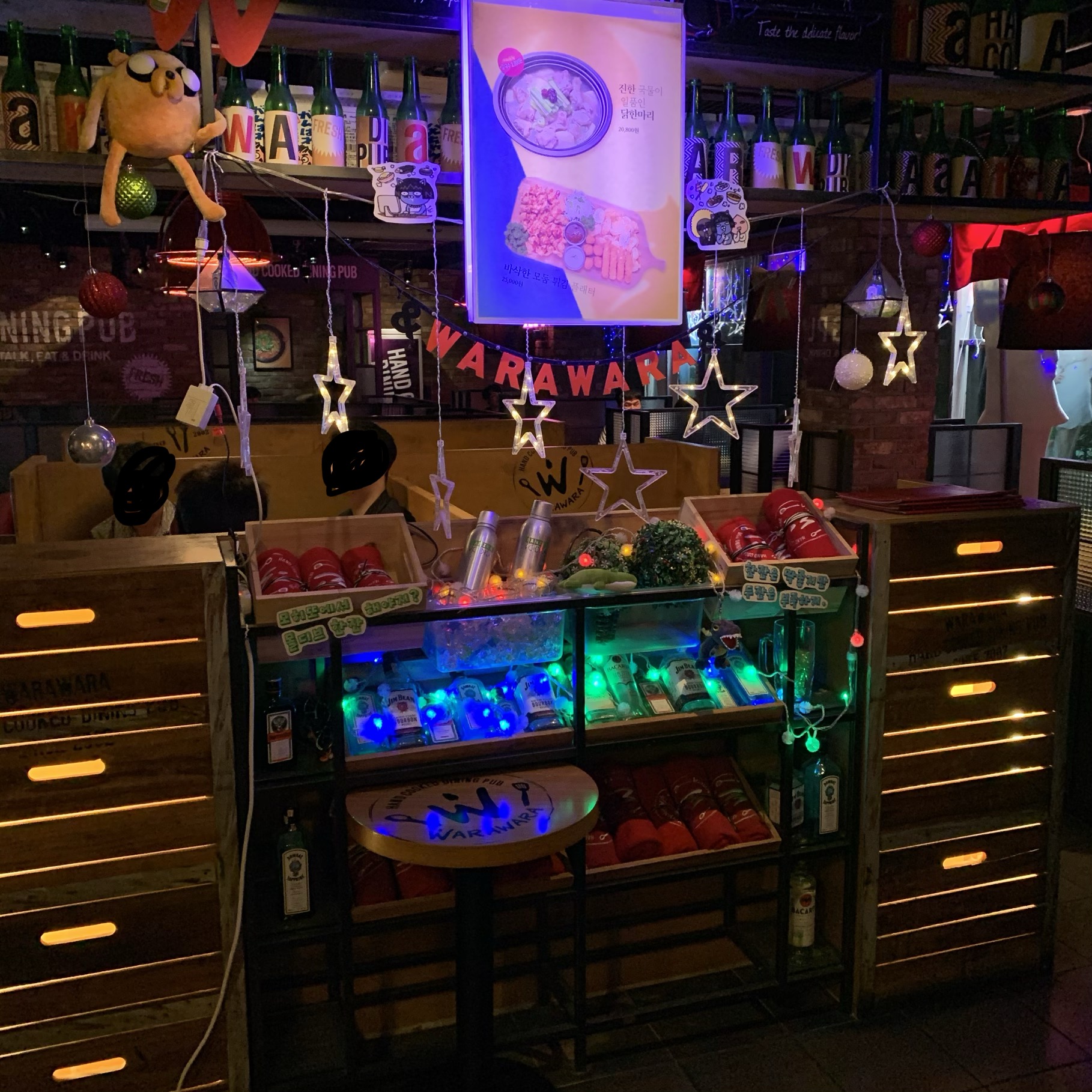 입구쪽에 인테리어를 해두었습니다. 그냥 테이블만 있다면 허전 했을텐데 잘 해놓은것 같습니다. 술집 답게 술로 장식 해놨습니다. 참 보기 좋네요.^_^