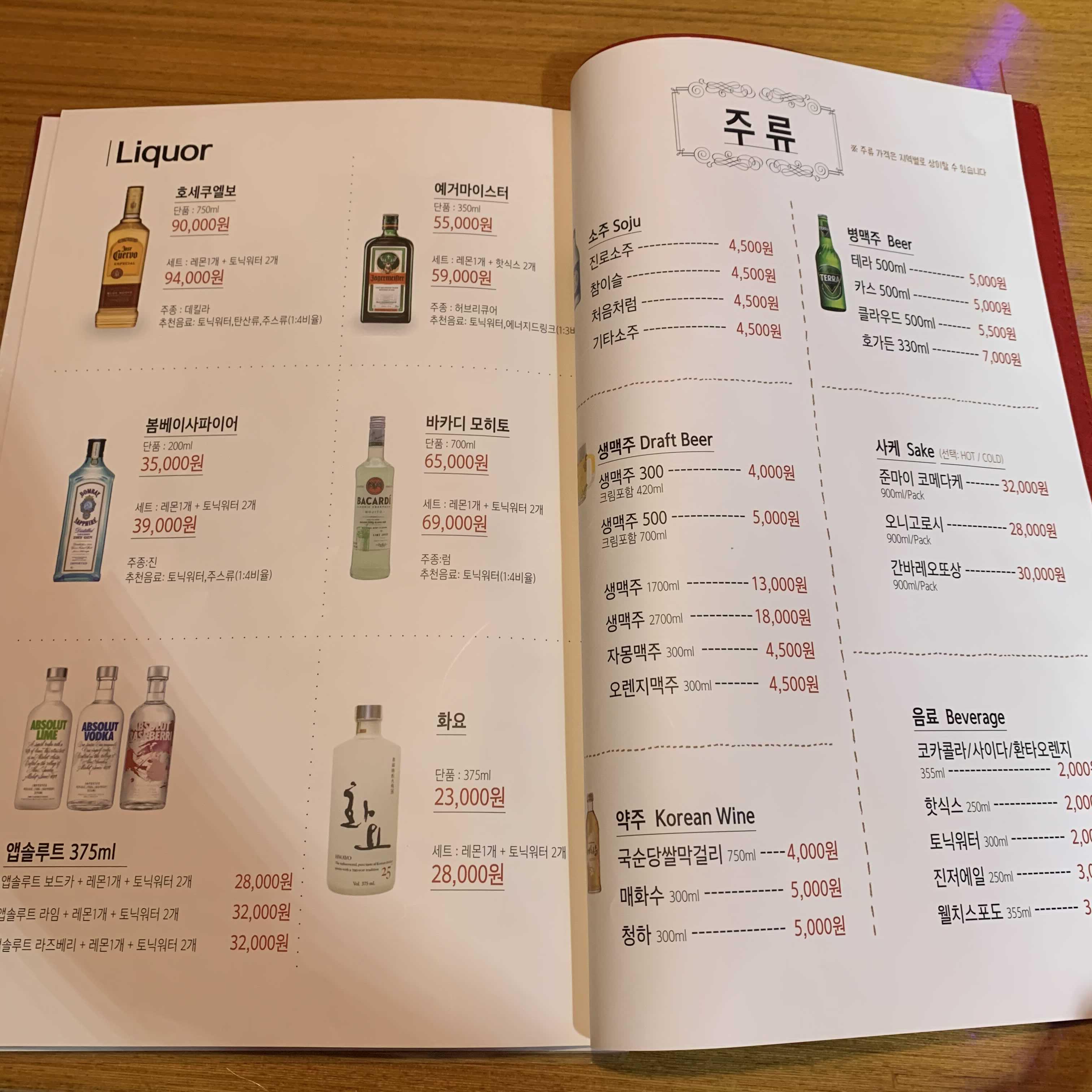 양주도 팔고 종류가 엄청 많습니다. 애주가 들이 와도 좋은 술집 같네요. 하지만 저는 소주만 먹었습니다.^~^