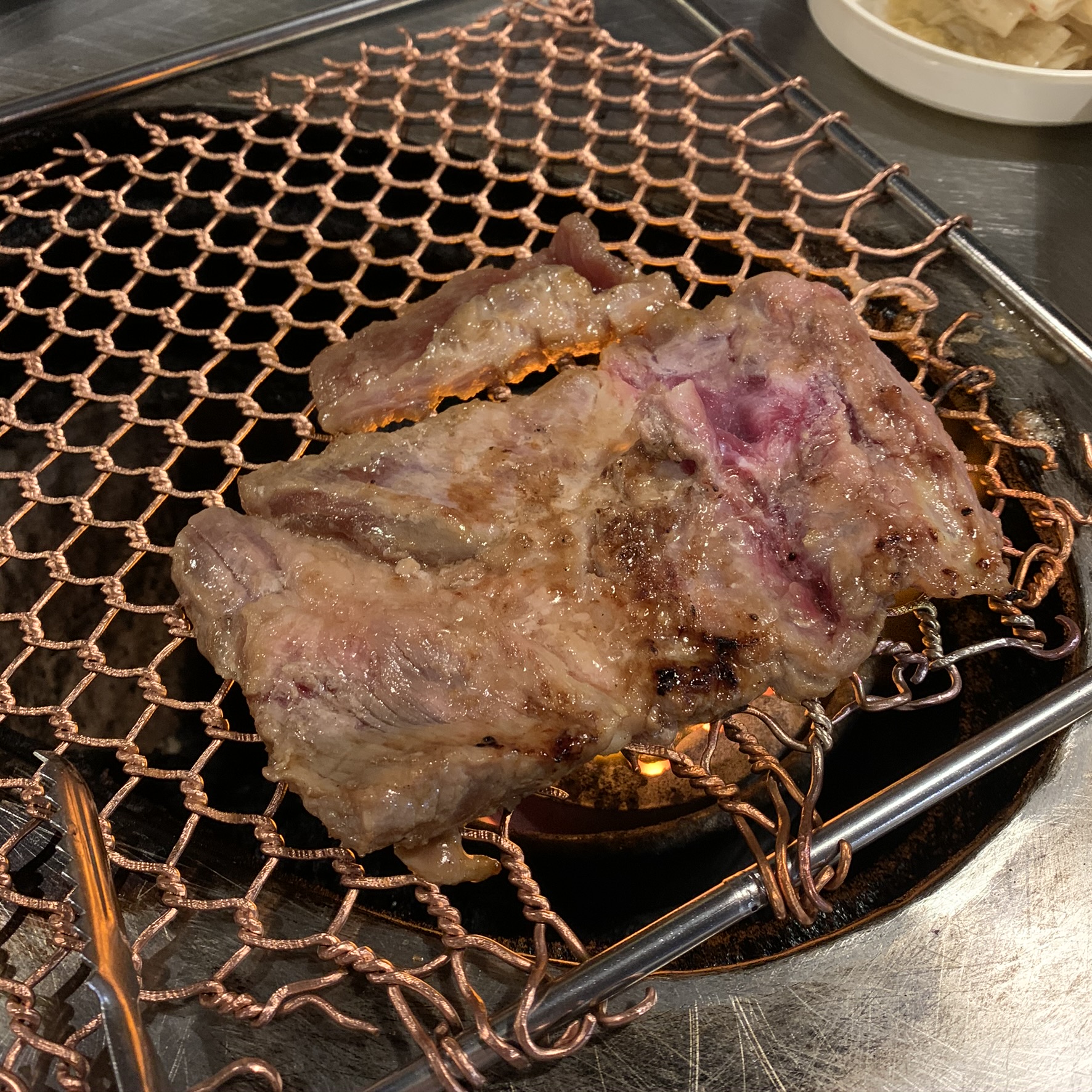 돼지갈비 1인분 모습입니다. 1인분은 오자마자 불에 얹어 버렸습니다. 손님이 별로 없어서 직접 구워주시더군요. 바쁘면 직접 안 구워주시나 봅니다.ㅎㅎ 제가 구워도 된다고 하였는데 직원 아주머님 께서 얘기하면서 구워주셨습니다. 감사합니다.ㅎㅎ