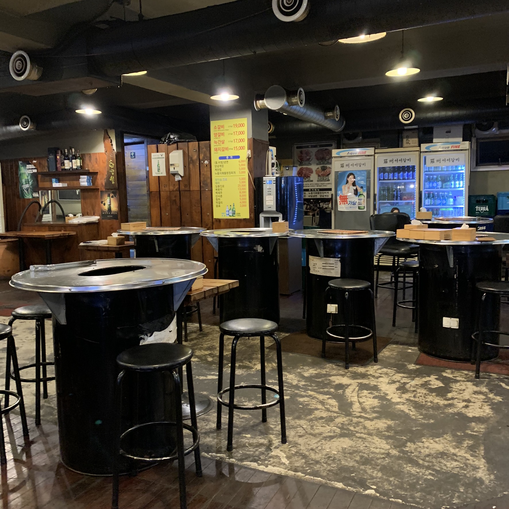 내부 모습입니다. 서서갈비라서 진짜 서서 먹는 갈비집도 있지만 여기는 앉아서 먹습니다.ㅎㅎ 중간에 연탄을 하나 올려놓고 불을 피우면서 구워 먹으면 됩니다. 저렇게 붙어있는 테이블도 있어 단체로 가도 다 같이 먹기도 좋습니다.ㅎㅎ