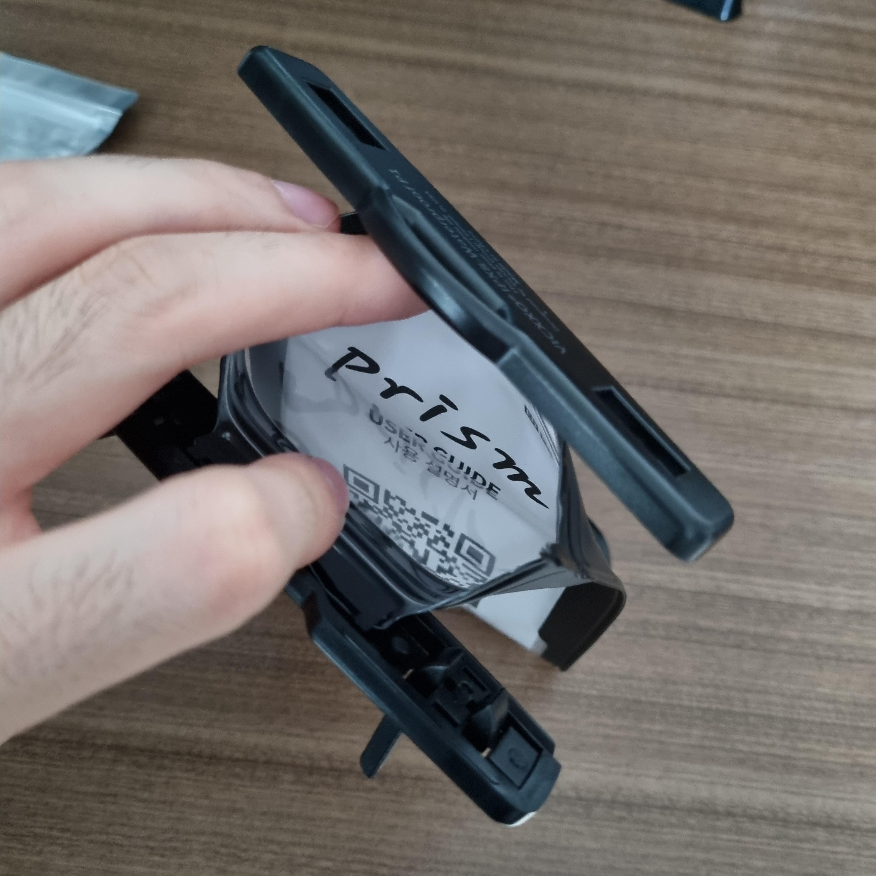 사진 속 스티커가 있는 쪽 홈에서 양쪽으로 한번 열면 끝입니다.